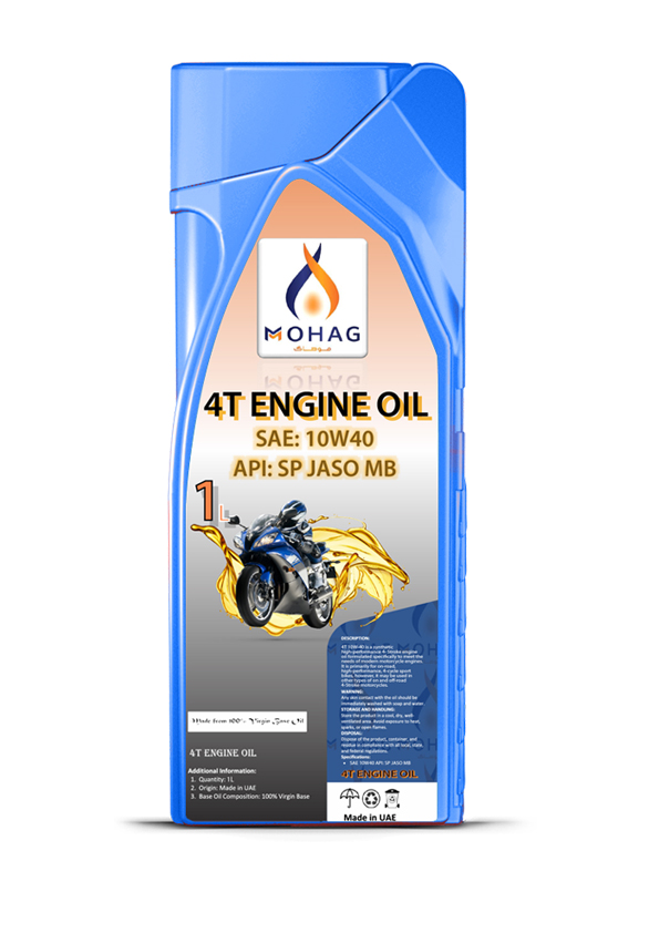 MOHAG 4T 10W-40 is a synthetic high-performance 4- Stroke engine oil formulated specifically to meet the needs of modern motorcycle engines. It is primarily for on-road, high-performance, 4-cycle sport bikes, however, it may be used in other types of on and off-road 4-Stroke motorcycles. It is formulated to help offer outstanding protection in 4-cycle, V-Twin type engines, particularly those which are air cooled and tend to run hotter than other types of engines
