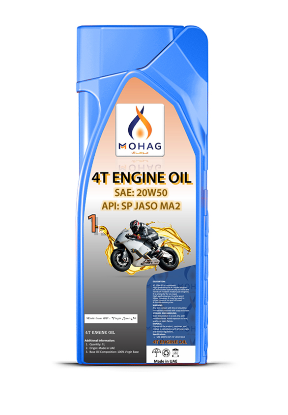 MOHAG 4T 20W-50 is a synthetic high-performance 4- Stroke engine oil formulated specifically to meet the needs of modern motorcycle engines. It is primarily for on-road, high-performance, 4-cycle sport bikes, however, it may be used in other types of on and off-road 4-Stroke motorcycles. It is formulated to help offer outstanding protection in 4-cycle, V-Twin type engines, particularly those which are air cooled and tend to run hotter than other types of engines