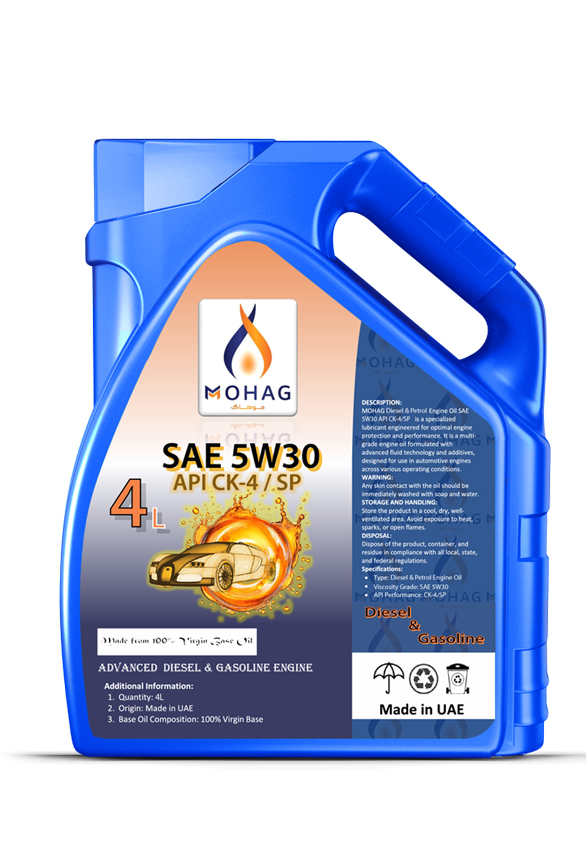 MOHAG Motor Engine Oil 5W-30 is an advanced technology motor oil providing excellent performance in passenger car engines. It is formulated to ensure excellent viscosity retention and superior engine protection under all driving conditions. Guarantees easy cold start and fuel economics due to its extreme fluidity at low temperatures and maintains a very resistant oil film at high temperatures. Recommended for gasoline, turbo charged and multi valved engines